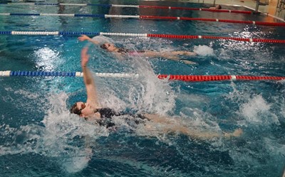 Nach 25m Rücken kamen die Kraulbeine, dann das Brustschwimmen und …
