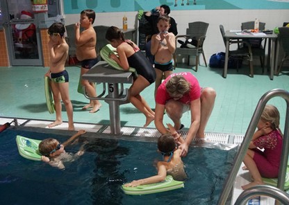 Danach schwammen alle die möglichen Wettkampfstrecken – hier 50m Brust mit Wende,